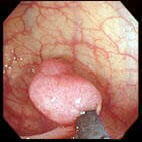 | 隆起性腫瘍病変が、大きく育つと、何らかの症状(血便、便が細い、腹がはる、腹痛、やせ、 顔色が悪い等)が現れます 最終的には、通過障害(高度な便秘、腹部膨満、腸閉塞)が起こってきます。 |