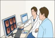| C診察室 | @ 皆様 ご心配であろう 「検査結果」は 検査終了後、 直ちに(当日) お話しいたします。 直前に記録した内視鏡画像をモニタ画面に再生しながら、ご理解いただけるまで、説明いたしますよ 右図参照 A 検査後の食事等の注意事項もお話しいたします。 ・大きなポリープを高周波を使用して切除した場合は(ポリペクトミ −)、大切な注意事項(禁酒・安静・食事制限など)等があります (検査後の注意事項は、健康状態、症状、年齢、検査内容・結果により 微妙に異なりますので、ご留意願います)。 ・ポリペクトミ−行った方以外の多くは、検査翌日から 検査前と通常の生活が可能となるのが現実です。 |