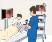 観察するのは、食道・胃・十二指腸・乳頭部です。 小指より細い内視鏡を挿入し、胃袋などの内 側(粘膜といいます)を直接観察します。