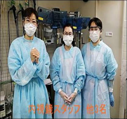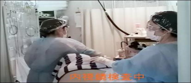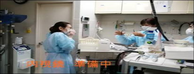 | 完全装備での内視鏡検査 | 紫外線殺菌灯5台 | 内視鏡検査スタッフ 看護師等6名 医師4名 |